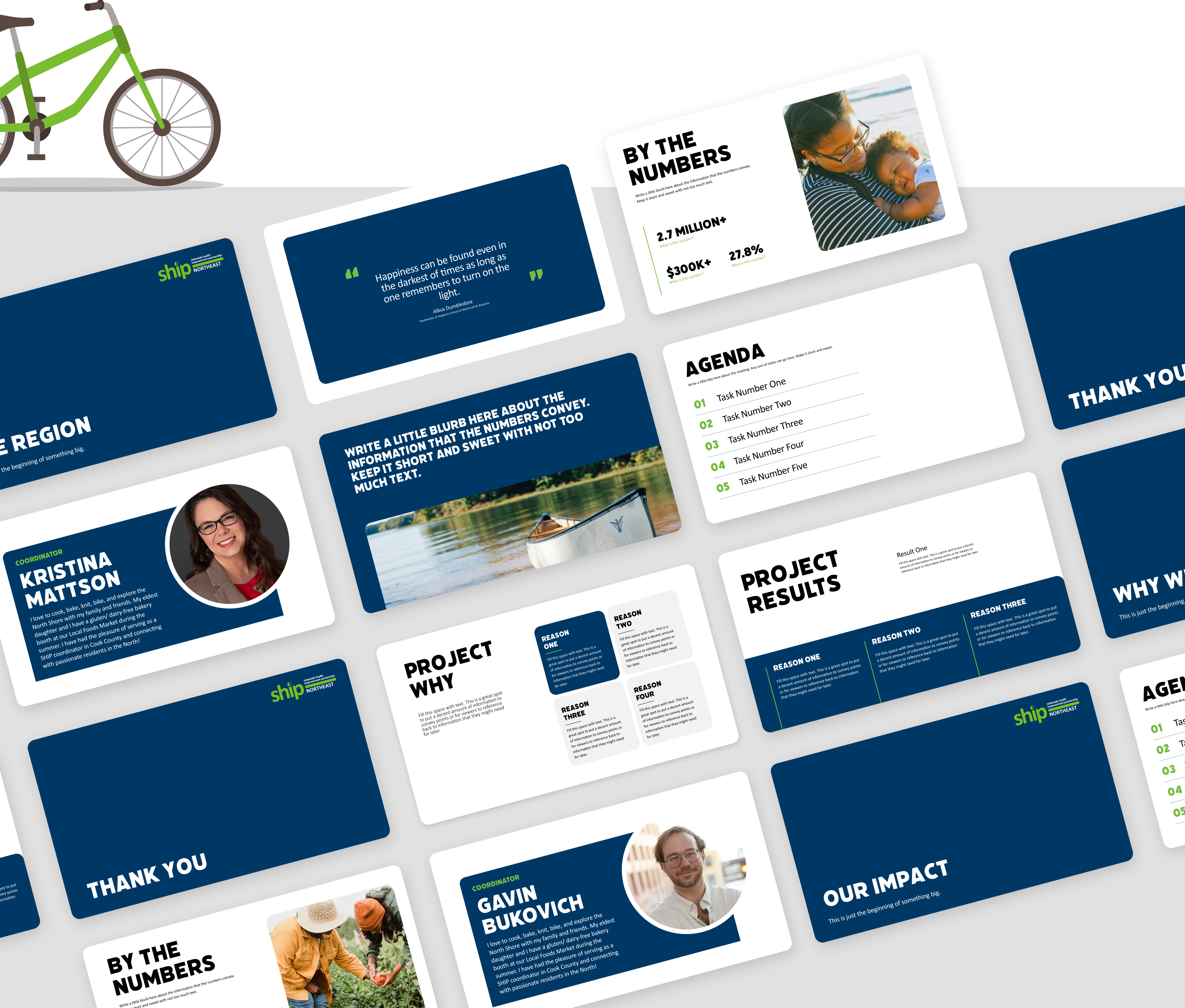 Through several meetings with the organization's leadership and their on-the-ground teams in the counties they serve, we uncovered key insights. The biggest opportunity to address their challenges was to create a brand system that worked both holistically and at the local level. Our goal was to eliminate the complexity of juggling multiple logos for SHIP, Healthy Northland, and individual county programs. This was creating confusion internally and externally, and streamlining the branding would bring much-needed clarity.
