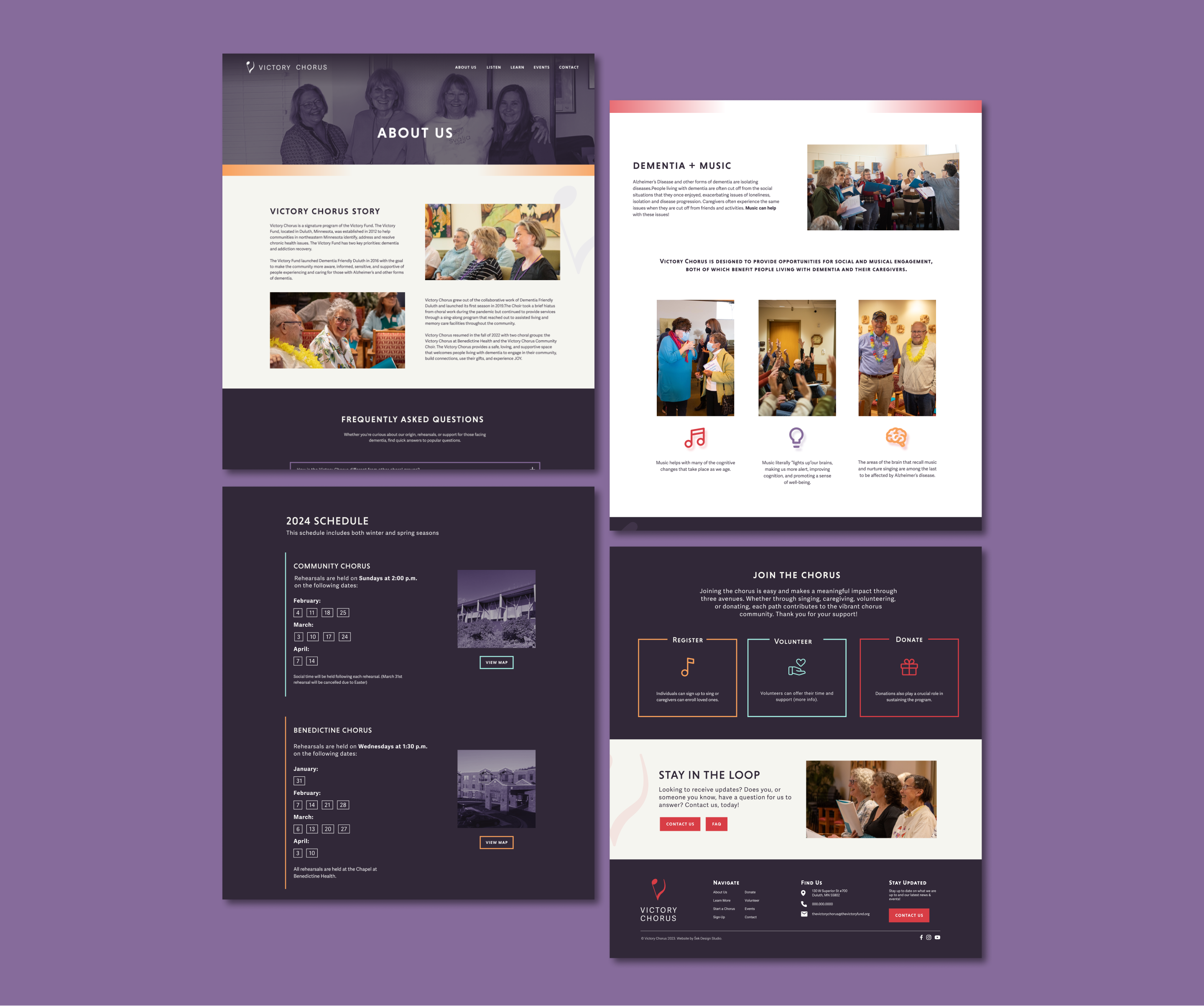 The Victory Chorus provides a safe, loving, and supportive space that welcomes people living with dementia to engage in their community, build connections, use their gifts, and experience joy. Put simply, they ultimately want to uplift spirits through song. But they felt that their brand was outdated and lacked the ability for their internal team to use it easily across different promotional and communication pieces.